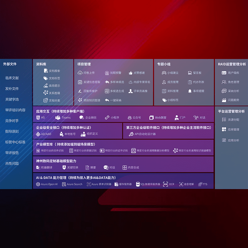 医疗器械产品上市前,,,,要熟悉严格与繁复评审标准,,,整理分析监管机构指导文件中的海量信息。。。企业急需一个智能化解决方案,,,,提升知识管理效率,,,,提高评审通过率,,以提升其市场竞争力。。。。